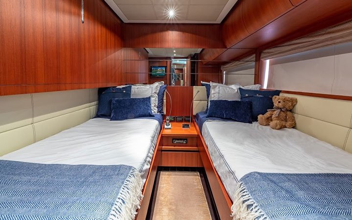 Yacht Rental Deals offers a luxurious charter experience with accommodations for up to 8 guests in 4 suites, including a master suite, two VIP cabins, and two twin cabins. The yacht features a convenient swim platform for easy sea access and carries up to 3 crew members to ensure a relaxed journey. Notable amenities include air conditioning for comfort during your adventures.